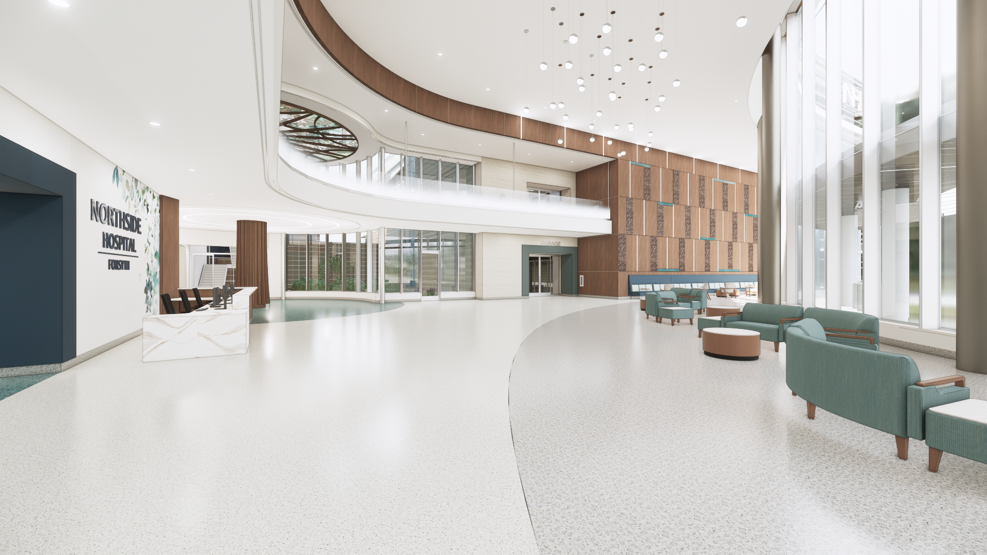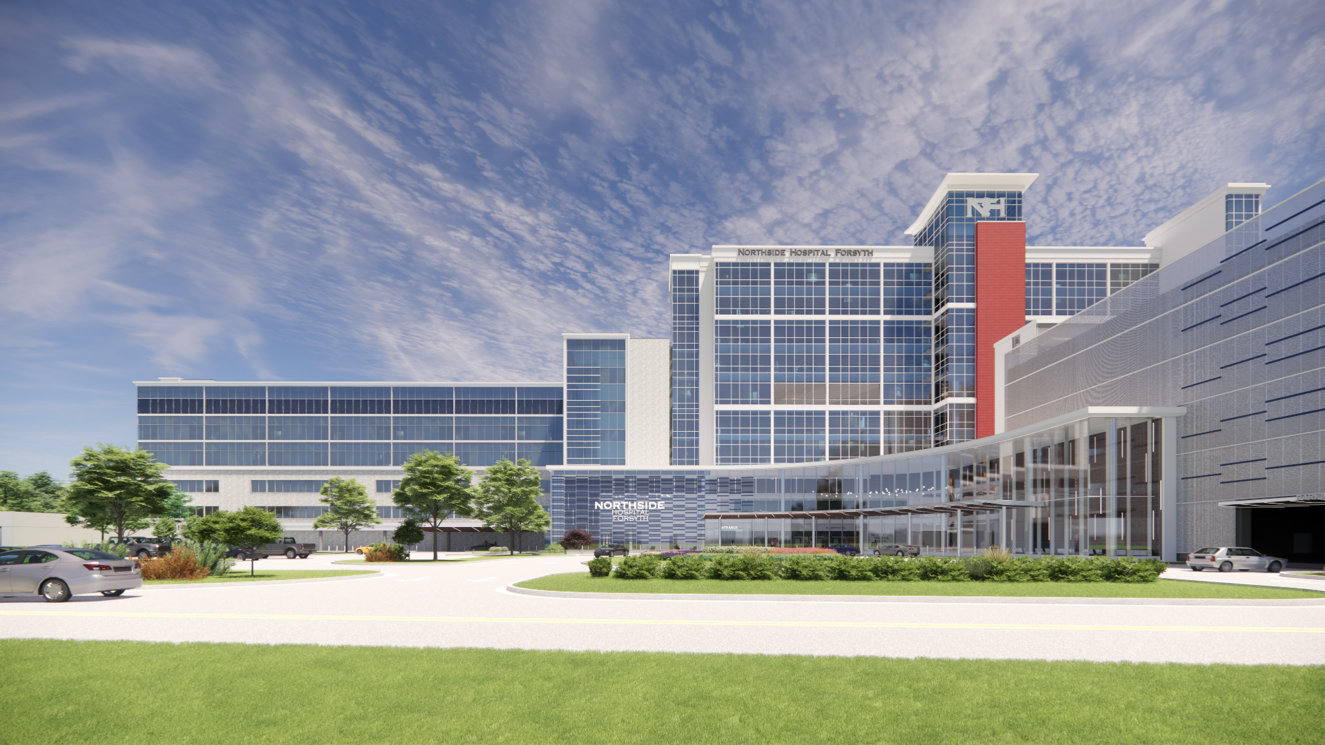 Northside Forsyth: The master plan effort at the Northside Forsyth campus involved looking at several areas of focus simultaneously to develop the framework for a thoughtfully zoned campus. The implementation includes inpatient capacity, accompanying diagnostic and treatment capabilities, emergency department capabilities, proportional support services, parking availability and connectivity, administration and education spaces, and technologic innovation. As the campus continues to expand, a core tenet was to ensure the ability to get where you need to go no matter how you enter the facility, and the on-stage/off-stage separation among others– into any new construction.